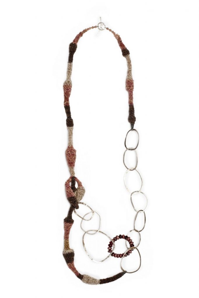 Seleccionamos siempre materiales nobles, locales y propios, como la seda, lana de oveja y llama, chaguar (comunidades wichis), piedras semi-preciosas, metales, maderas y cueros de la Argentina. Los elegimos por placer visual, textura y color.