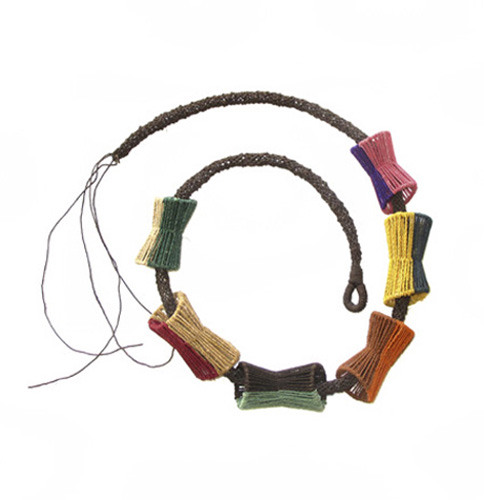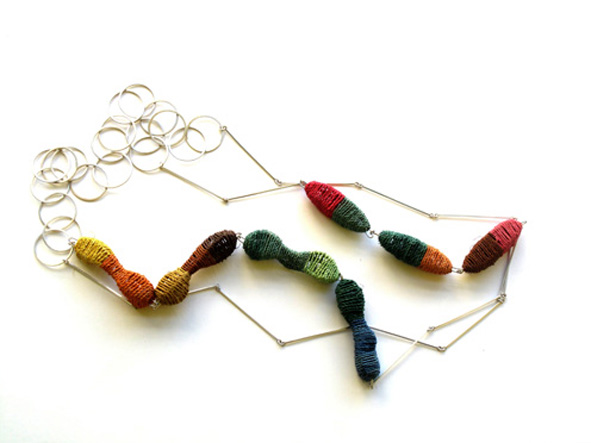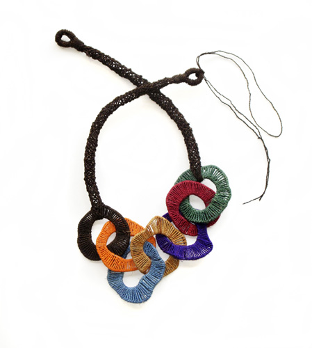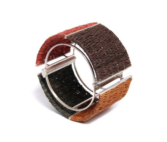 Graciela Lescano es salteña, bióloga, artista. Su identidad en todos los planos (individual, pero también femenina, salteña, comprometida y latinoamericana, entre tantas otras) se expresa de manera singular, muy propia, reconocible y encantadora a través de las fibras, el color y el tejido en su trabajo de joyería.