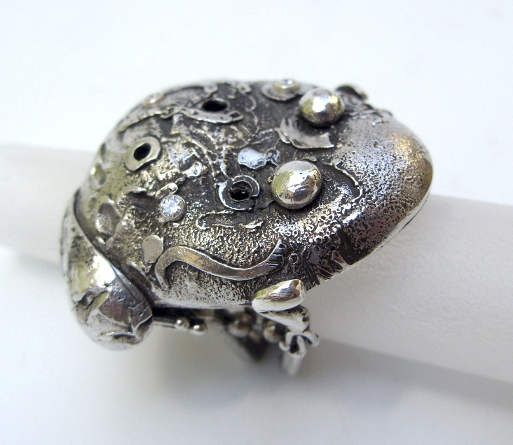Crea sus piezas desde el papel, conformando líneas creativas únicas, con una gran versatilidad en sus diseños, realizados totalmente a mano en plata, oro y piedras preciosas y semipreciosas y todo aquel material noble que sea funcional a la imagen buscada. Las técnicas que utiliza son cera perdida, fuego controlado y construcción tradicional de orfebrería, buscando recrear diferentes conceptos en cada diseño.