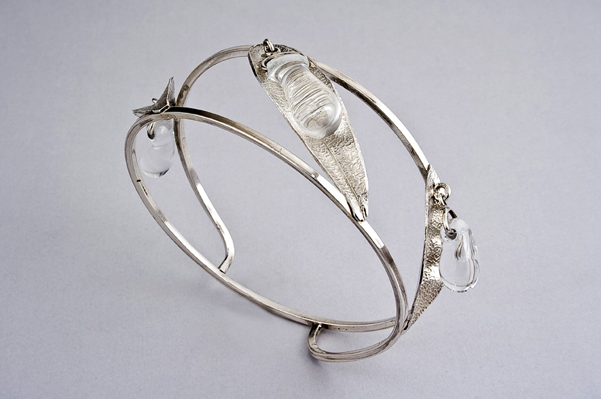 Diseño joyas con un concepto escultórico; tomo temas y los desarrollo hasta agotarlos, cosa que hasta ahora nunca sucedió: siempre encuentro alguna pieza para agregar. Por ejemplo, las flores, entre ellas las calas, con las que ya había trabajado en escultura entre los años 85 y 90, dieron origen a una serie que les muestro en esta página.