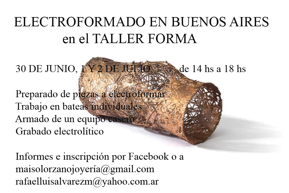 Entre el 30 de junio y el 11 de julio, Rafael Alvarez realizará tres seminarios de Electroformado, uno en Buenos Aires y dos en Lisboa, Portugal