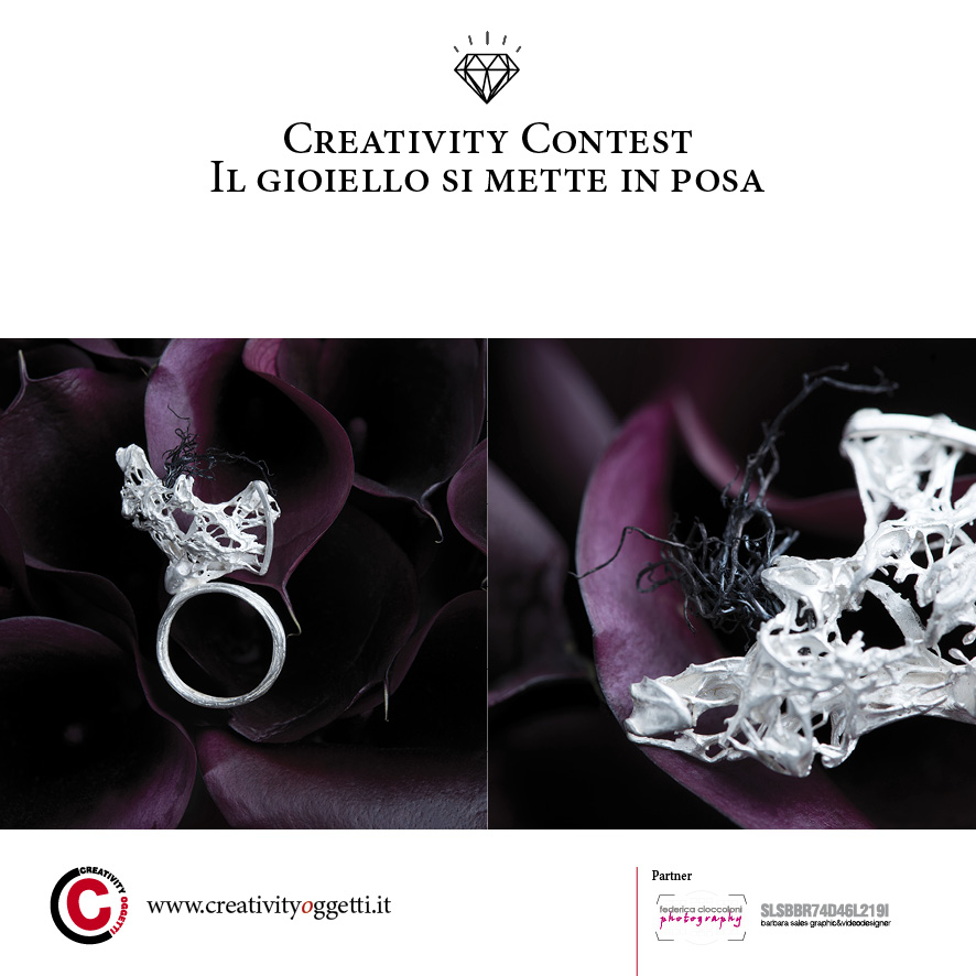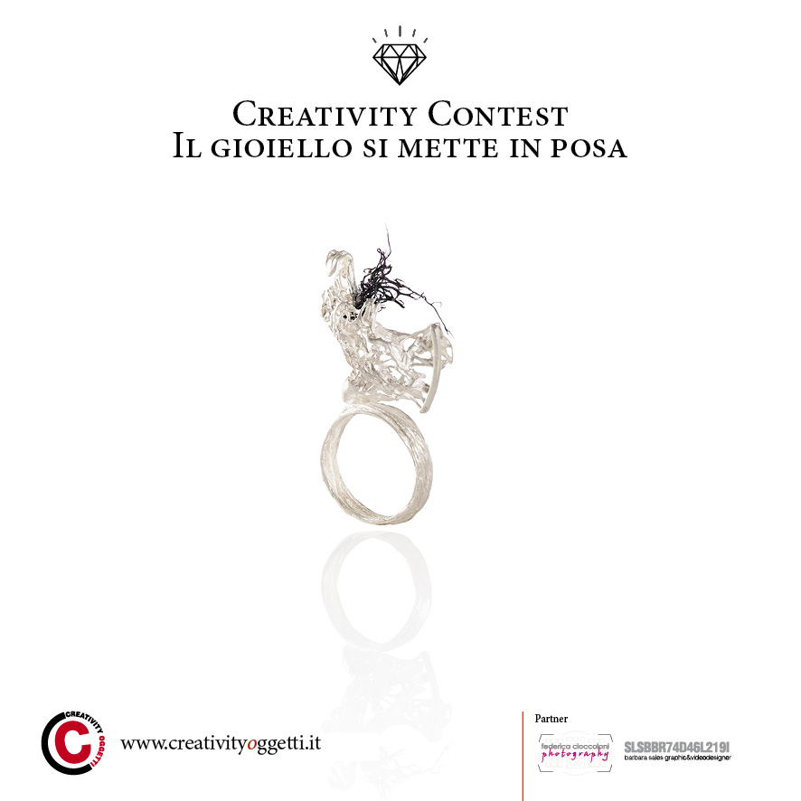 Contaminación de lenguajes, sabiduría técnica, narración, capacidad para emocionar, la joya puede y debe ser todo esto. Si fuese una pregunta, armonía sería la respuesta.Creativity Oggetti apunta desde hace 16 años los reflectores sobre artistas y diseñadores que dedican su labor a la búsqueda de obras de arte, a la bandera de lo «hecho a mano» y a la definición de un lenguaje artístico personal, haciendo de interfaz entre el artista y el público y promoviendo trabajos en su mayoría inéditos. La idea de dar una voz a quien investiga, o quizás dedica la vida misma a definir un lenguaje artístico personal, puede ser un buen motivo para idear y promover un concurso dedicado a la joya contemporánea con una mirada internacional.“Il gioiello si mette in posa” quiere ser una vitrina qeu ofrece oportunidades profesionales a todos los participantes. Las obras estarán expuestas y a la venta hasta el 30 de junio de 2017 y dejarán documento de su paso en el Catálogo “Il gioiello si mette in posa” con textos de Paola Stroppiana y las fotogravías de Federica Cioccoloni.