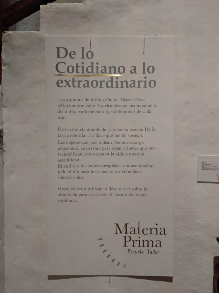 «De lo Cotidiano a lo Extraordinario» es la exposición de la escuela Materia Prima en el marco del Simposio En Construcción III – Simposio de Joyería Contemporánea, organizado por Francisca Kweitel de Argentina y el colectivo colombiano De La Mano, en Santa Fe de Antioquia, Colombia.