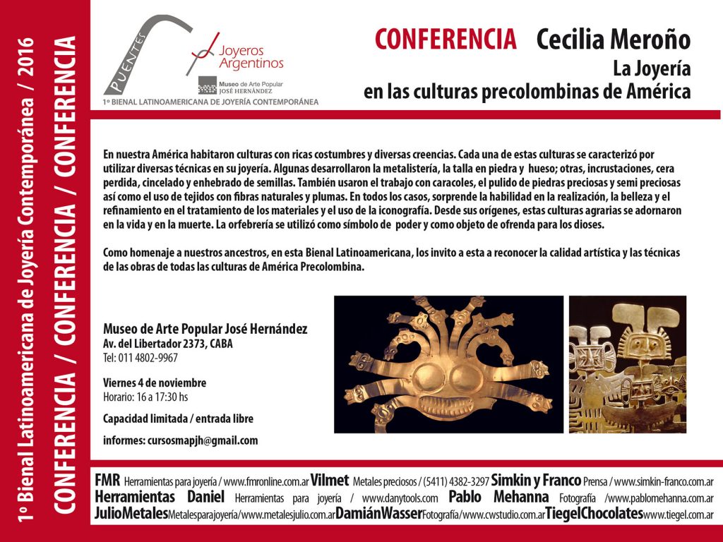 Charla: La joyería en las culturas de América Precolombina, a cargo de Cecilia Meroño